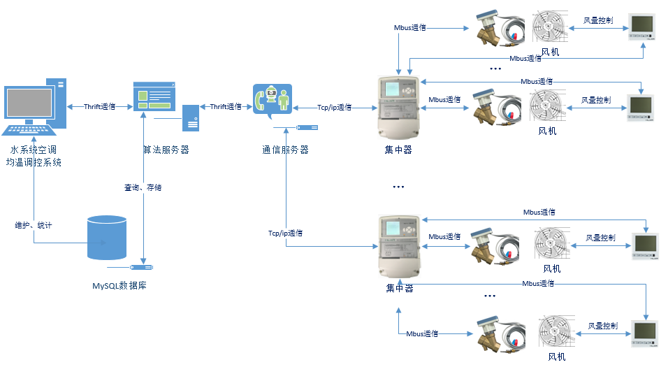 該系統(tǒng)是一款以水系統(tǒng)空調系統(tǒng)項目中的智能監(jiān)測調控系統(tǒng),監(jiān)控空調運行參數(shù)為手段,以空調節(jié)能運行管理為目的的Web化系統(tǒng),通過在線監(jiān)測空調運轉模式、供回水溫度、室內溫度、設定溫度、電量等運能參數(shù),并進行周期采集,進而對數(shù)據(jù)進行統(tǒng)計、分析,考慮到供暖、制冷過程中房屋日照朝向及風盤遠近程度主要因素,在此基礎上建立一套相應的空調節(jié)能管理模型,通過配以集中控制、水力平衡、預先調控、分時控制、分區(qū)控制等全方位調控手段,最終達到在線空調的節(jié)能運行管理,通過調控實現(xiàn)建筑空調用電節(jié)能10%~15%以上。