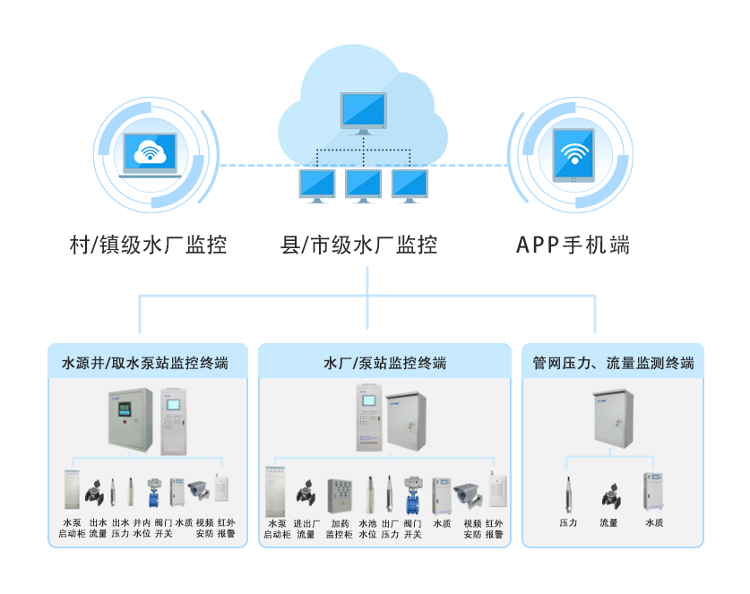 系統(tǒng)可全面提升城鄉(xiāng)飲水安全服務(wù)和管理水平,實(shí)現(xiàn)工程標(biāo)準(zhǔn)化建設(shè)、全方位監(jiān)管、科學(xué)化決策,生產(chǎn)自動(dòng)化控制、信息化管理、精準(zhǔn)化運(yùn)行。